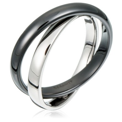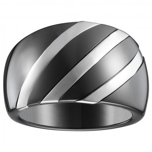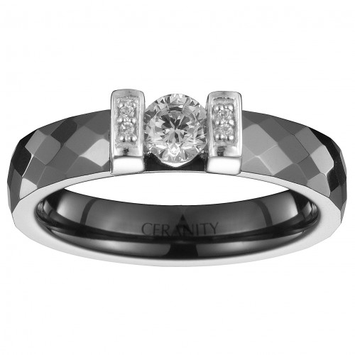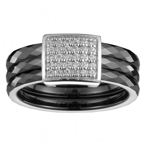 Bague Moustiers – Argent 925 rhodié & céramique noire à relief | Ceranity