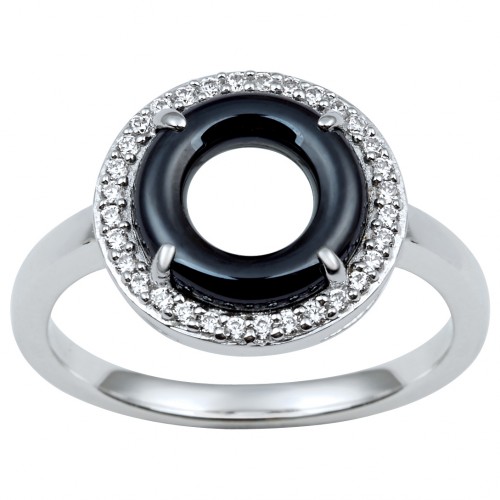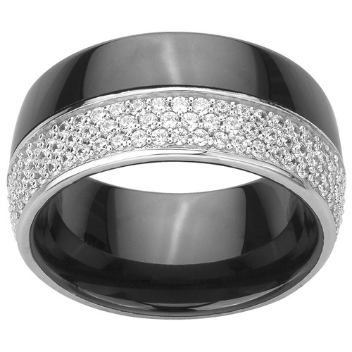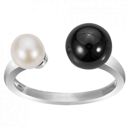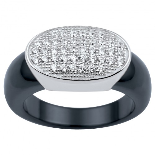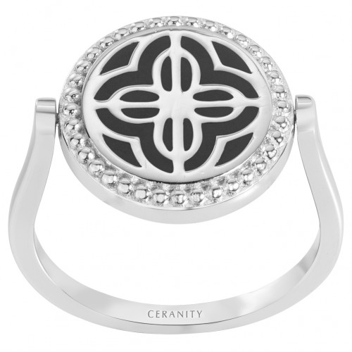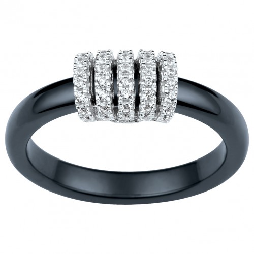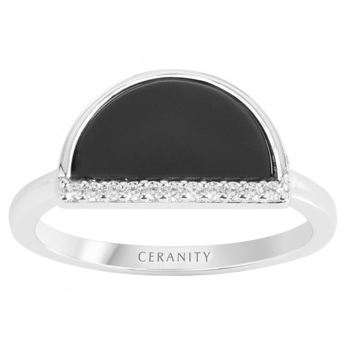 Bague Kintsugi en céramique noire lisse argent & oxydes de zirconium | Ceranity