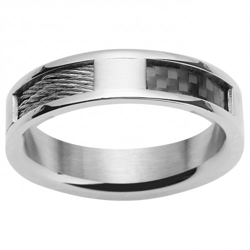 Bague pour homme en acier 316L inoxydable. Découvre la bague Léon, un bijou Phebus de haute qualité réalisé à partir d'acier inoxydable blanc brillant et de carbone noir. Garantie 2 ans, tu peux la porter au quotidien sans risque qu'elle s'abîme. Un très beau mélange de matières. L'anneau Léon se caractérise par l'alliance unique de l'acier inoxydable et du carbone, qui lui donne un aspect original et actuel. Elle est idéale pour les hommes qui souhaitent acquérir un bijou indémodable et mettre en valeur leur personnalité.