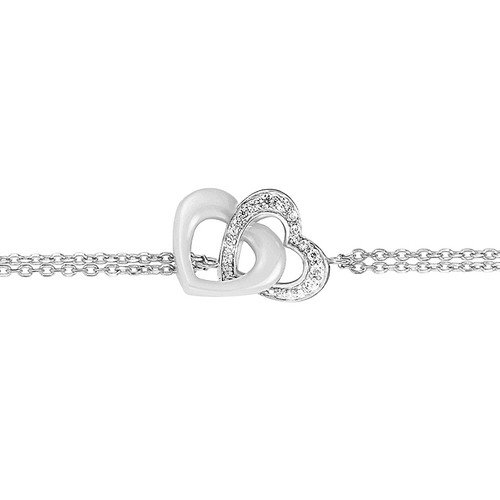 Le bracelet Velours évoque la tendresse d’un lien précieux. Deux cœurs entrelacés, l’un en céramique blanche, l’autre sublimé d’oxydes de zirconium, forment une harmonie parfaite entre éclat et douceur. Sa double chaîne en argent 925 rhodié renforce l’élégance de cette création romantique. Un bijou délicat à offrir pour célébrer l’amour ou l’affection, idéal pour la Saint-Valentin ou la Fête des Mères.