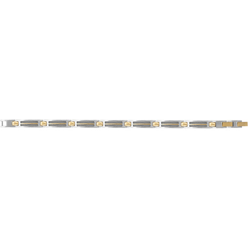 Un bijou de qualité, aux lignes affirmées. Ce robuste bracelet articulé est fait d'acier 316L inoxydable et de PVD bicolore brillant. Réglable de 20,5 à 22 cm, il est orné de morceaux de câble gris disposés en alternance avec des éléments dorés : un must pour ton look ! Doté d'un clip à double fermoir signé Phebus, ce bijou est garanti 2 ans. Le bon accessoire pour créer un style qui détonne. Ce bracelet inoxydable plein d'éclat est parfait pour accompagner tes vêtements d'homme décontracté : jeans, blazers, petits pulls ou polos à col en V.