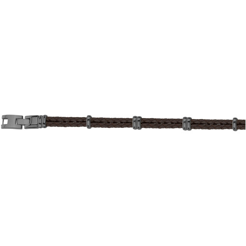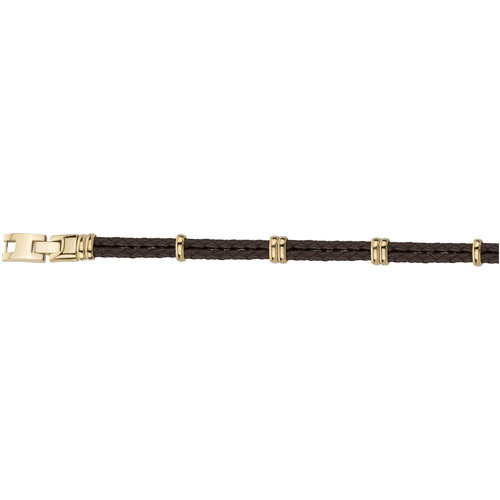 Bracelet homme Joe cuir marron tressé et acier doré