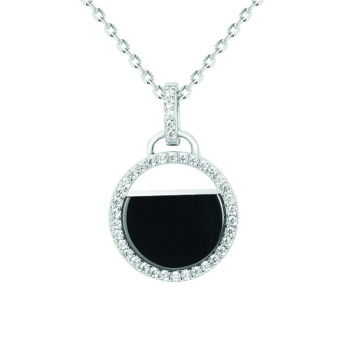Collier Ming – Céramique noire à relief & céramique blanche avec argent 925 rhodié et oxyde de zirconium | Ceranity